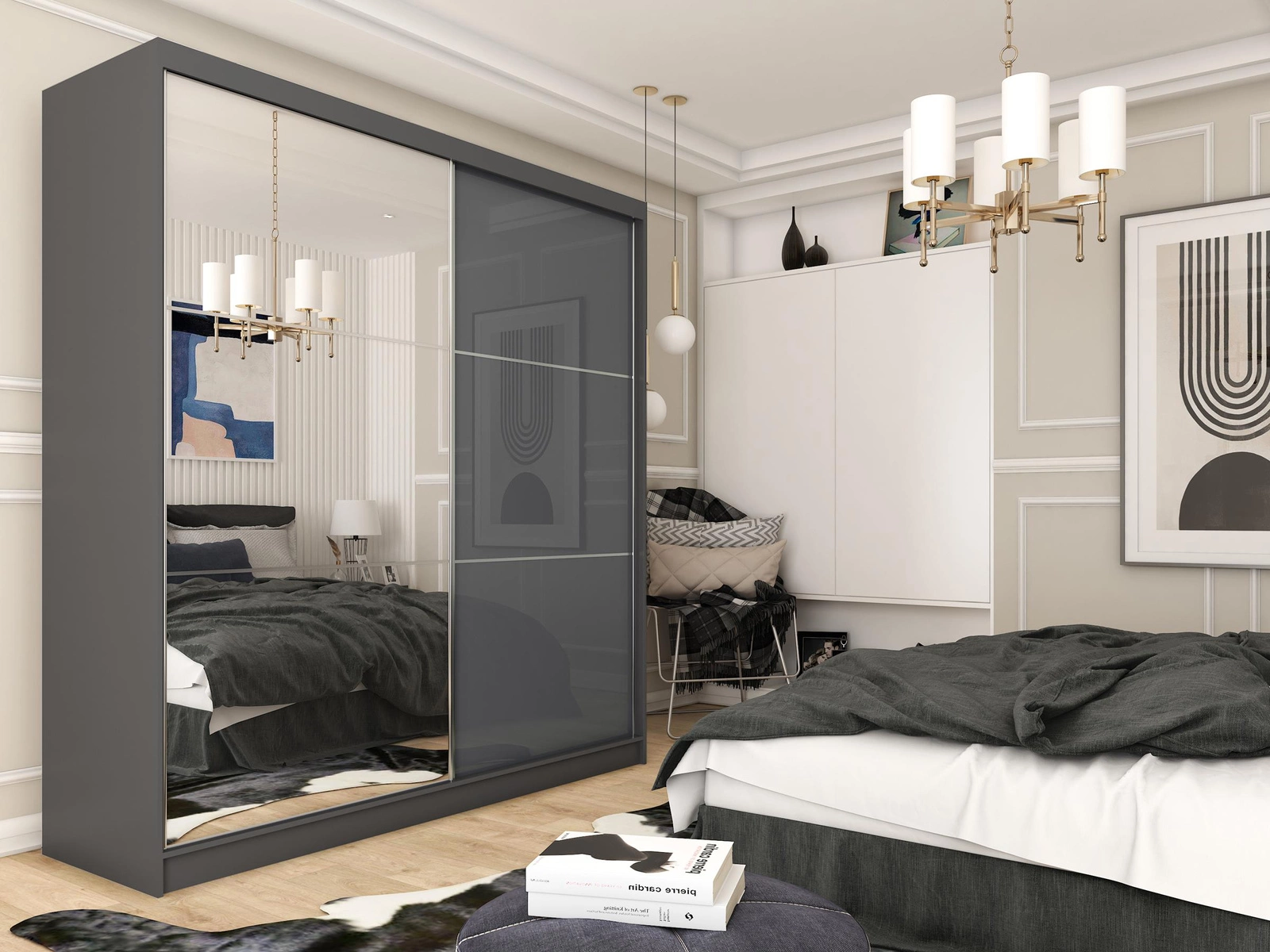 Schwebetürenschrank CINZIA mit Lacobel Glas Graphit