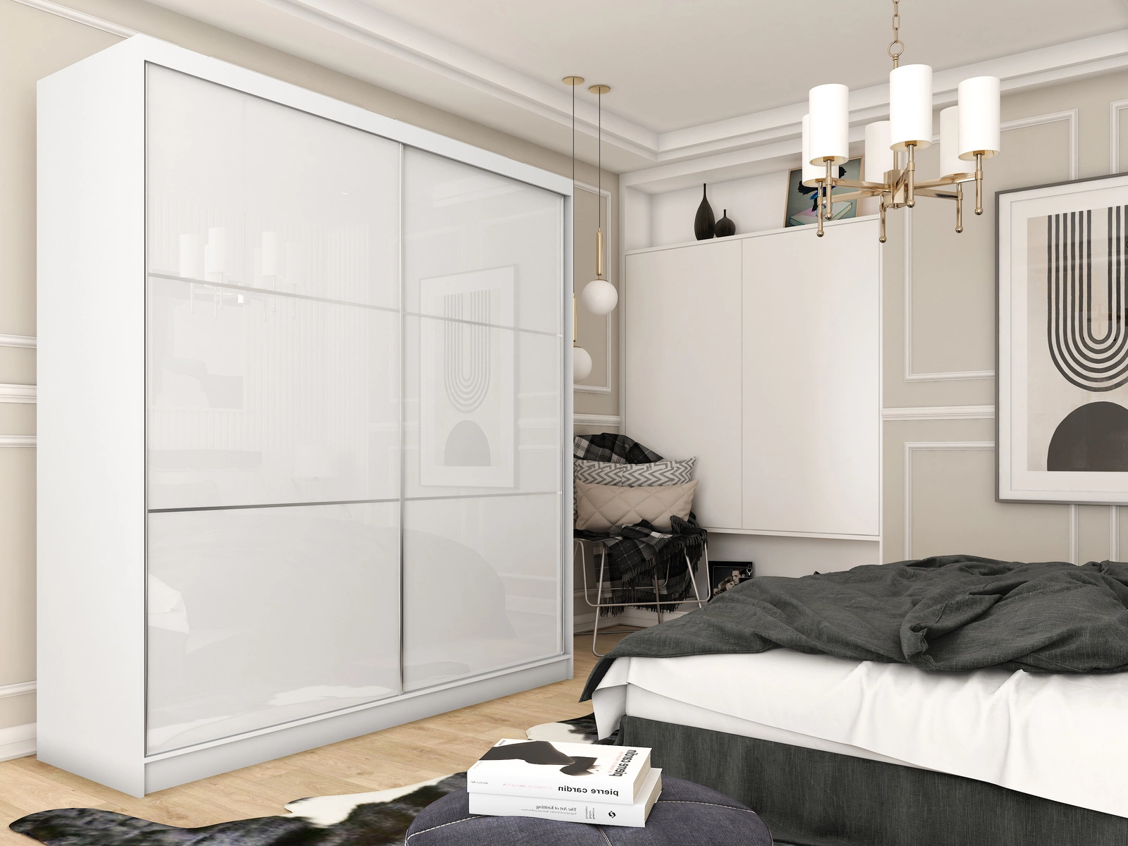 Schwebetürenschrank CINZIA mit Lacobel Glas Weiß