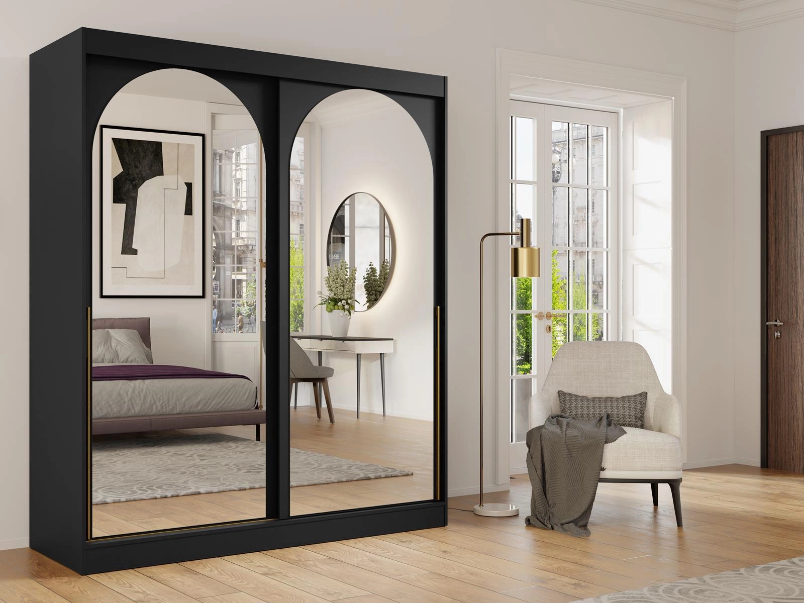 Schwebetürenschrank Kleiderschrank 180 Breit Schwarz LUCY