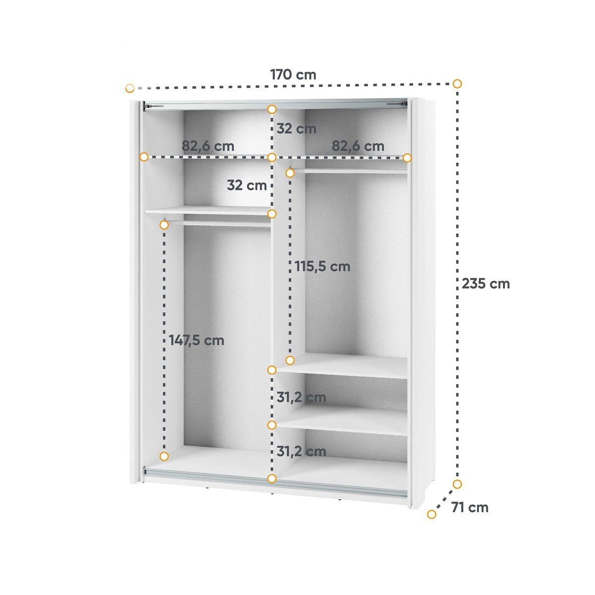 - Der Kleiderschrank ist eine praktische Lösung sowohl für das Schlafzimmer, das Ankleidezimmer als auch für den Flur