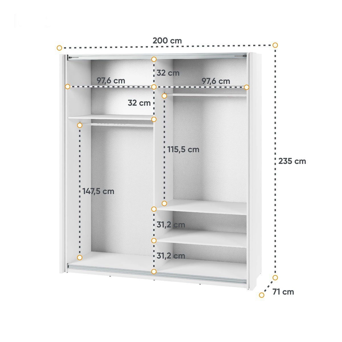 - Der Kleiderschrank ist eine praktische Lösung sowohl für das Schlafzimmer, das Ankleidezimmer als auch für den Flur