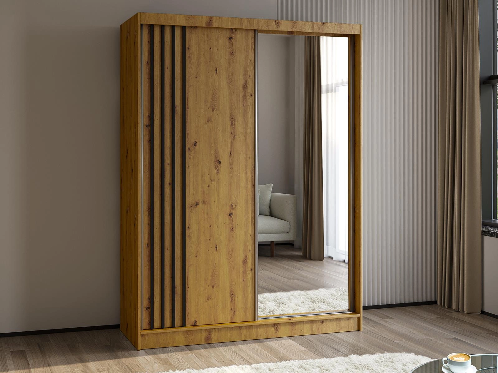 Schwebetürenschrank mit Lamelle MALTA Artisan + Schwarz