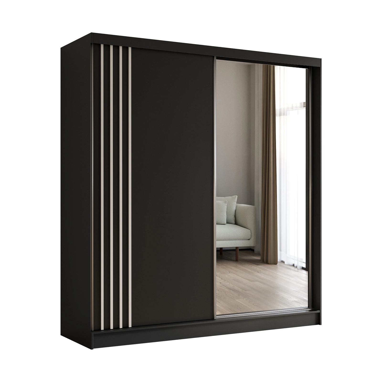 Schwebetürenschrank mit Lamellen MALTA Schwarz + Weiß