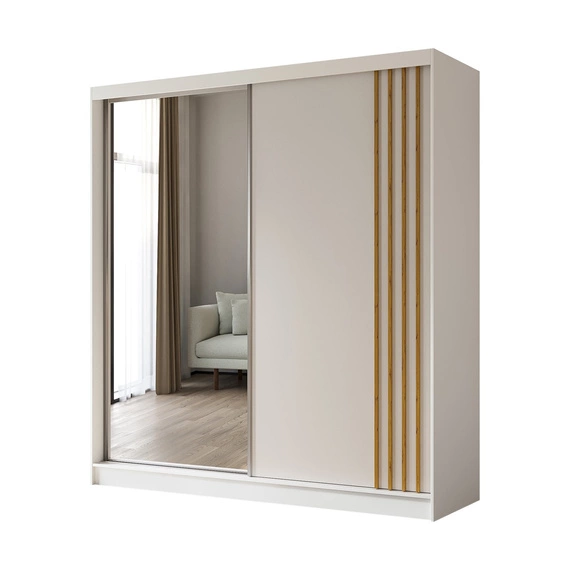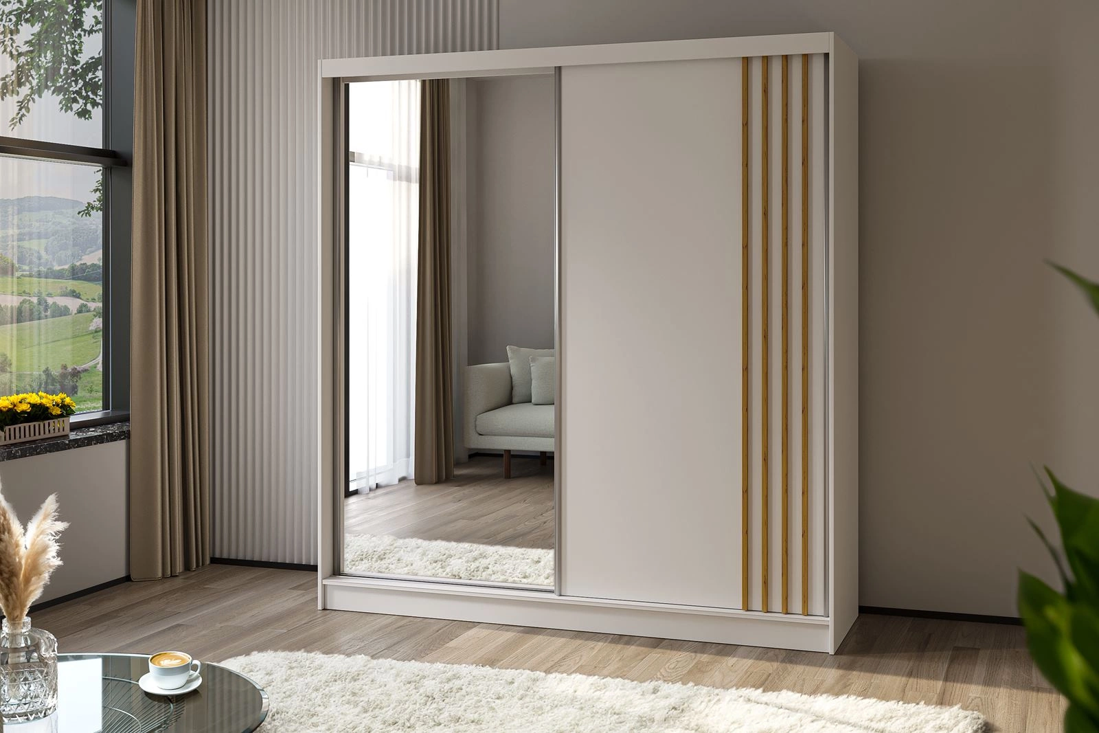 Schwebetürenschrank mit Lamellen MALTA Weiß + Eiche Artisan