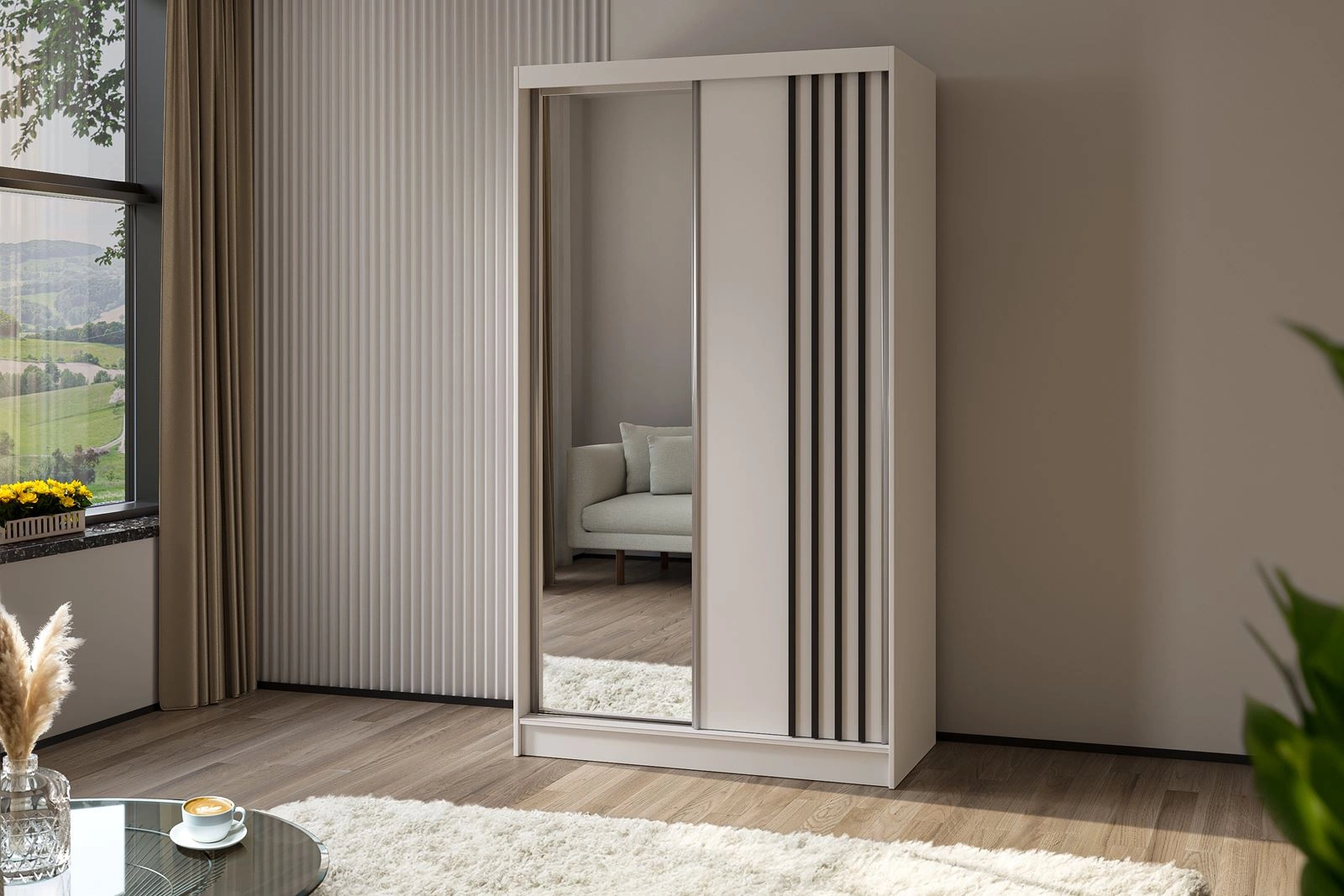 Schwebetürenschrank mit Lamellen MALTA Weiß + Schwarz