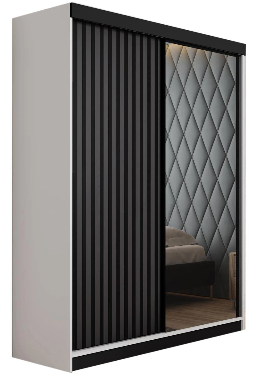 Moderner Schrank mit Lamellen und Spiegel – Stil und Funktionalität