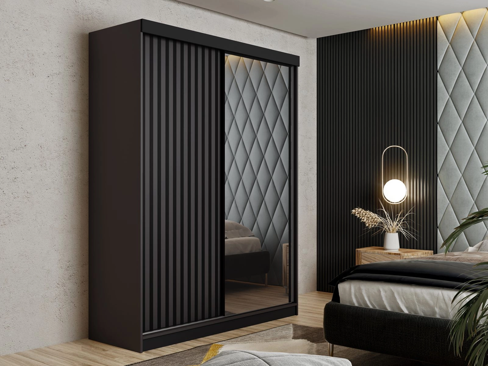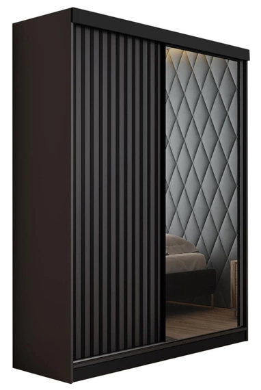 Schwebetürenschrank mit Lamellen und Spiegel LAMI graphit + schwarz