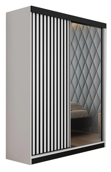 Schwebetürenschrank mit Lamellen und Spiegel LAMI weiß + schwarz