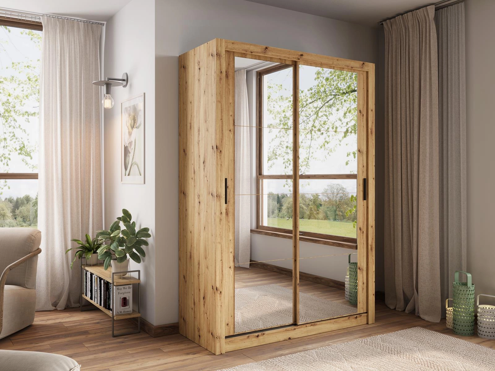 Schwebetürenschrank mit Spiegel ARTI Eiche Artisan