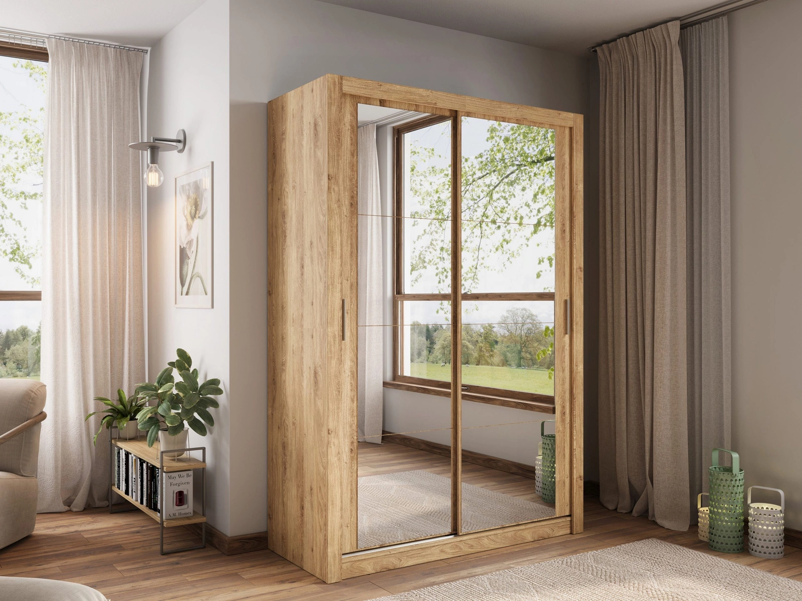 Schwebetürenschrank mit Spiegel ARTI Eiche Shetland