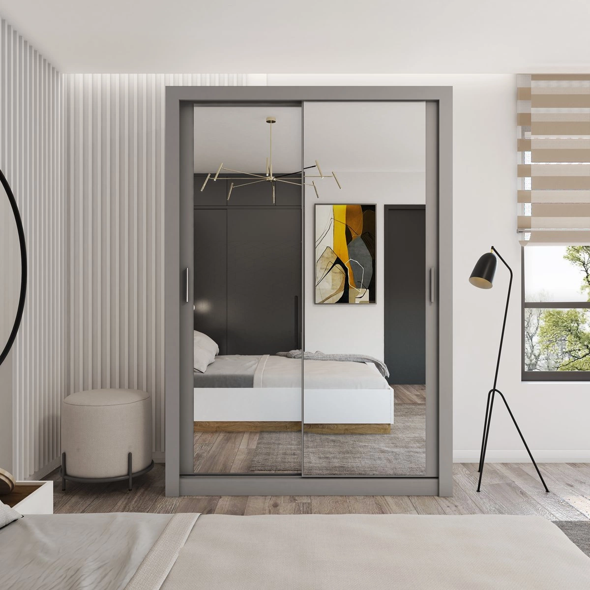 Schwebetürenschrank mit Spiegel für Schlafzimmer VENTI Grau