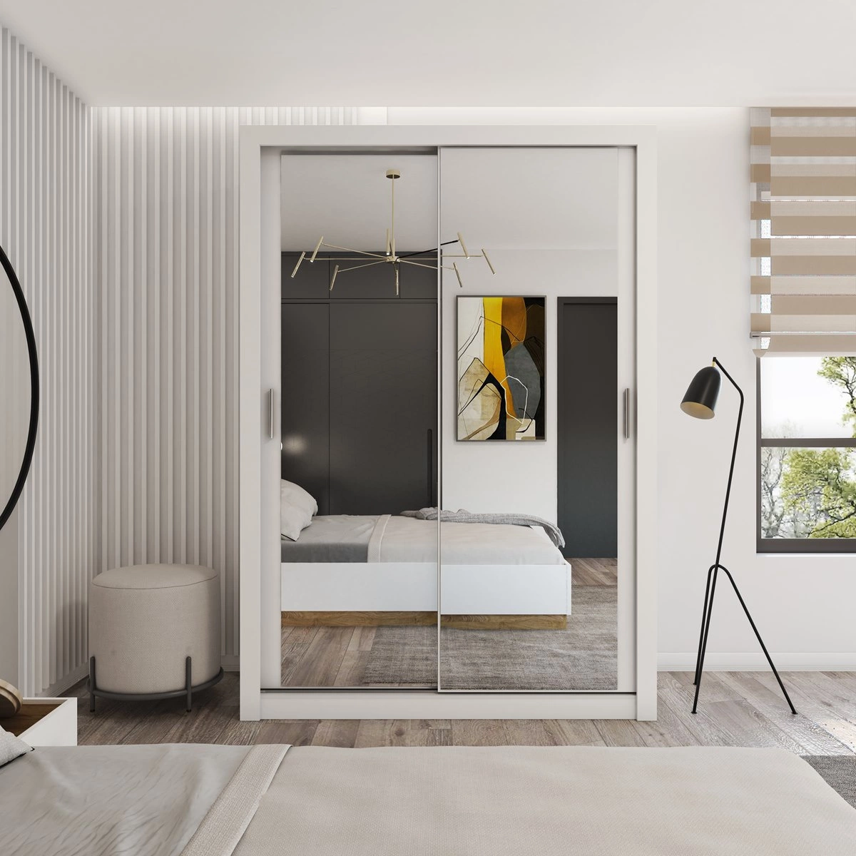 Schwebetürenschrank mit Spiegel für Schlafzimmer VENTI Weiß