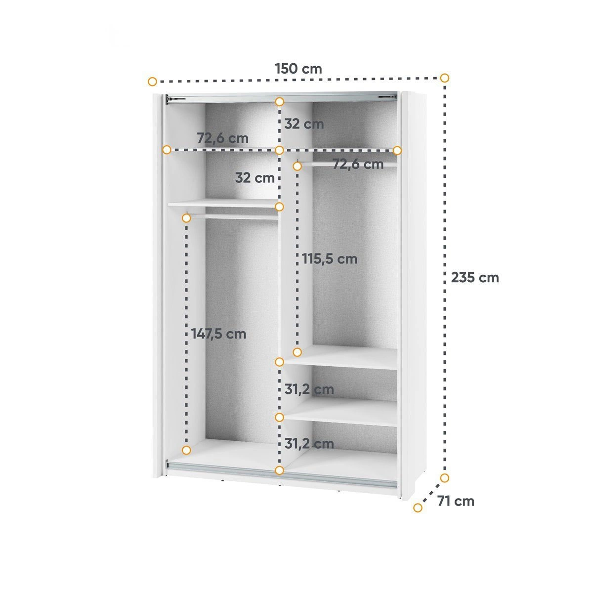 - Der Kleiderschrank ist eine praktische Lösung sowohl für das Schlafzimmer, das Ankleidezimmer als auch für den Flur
