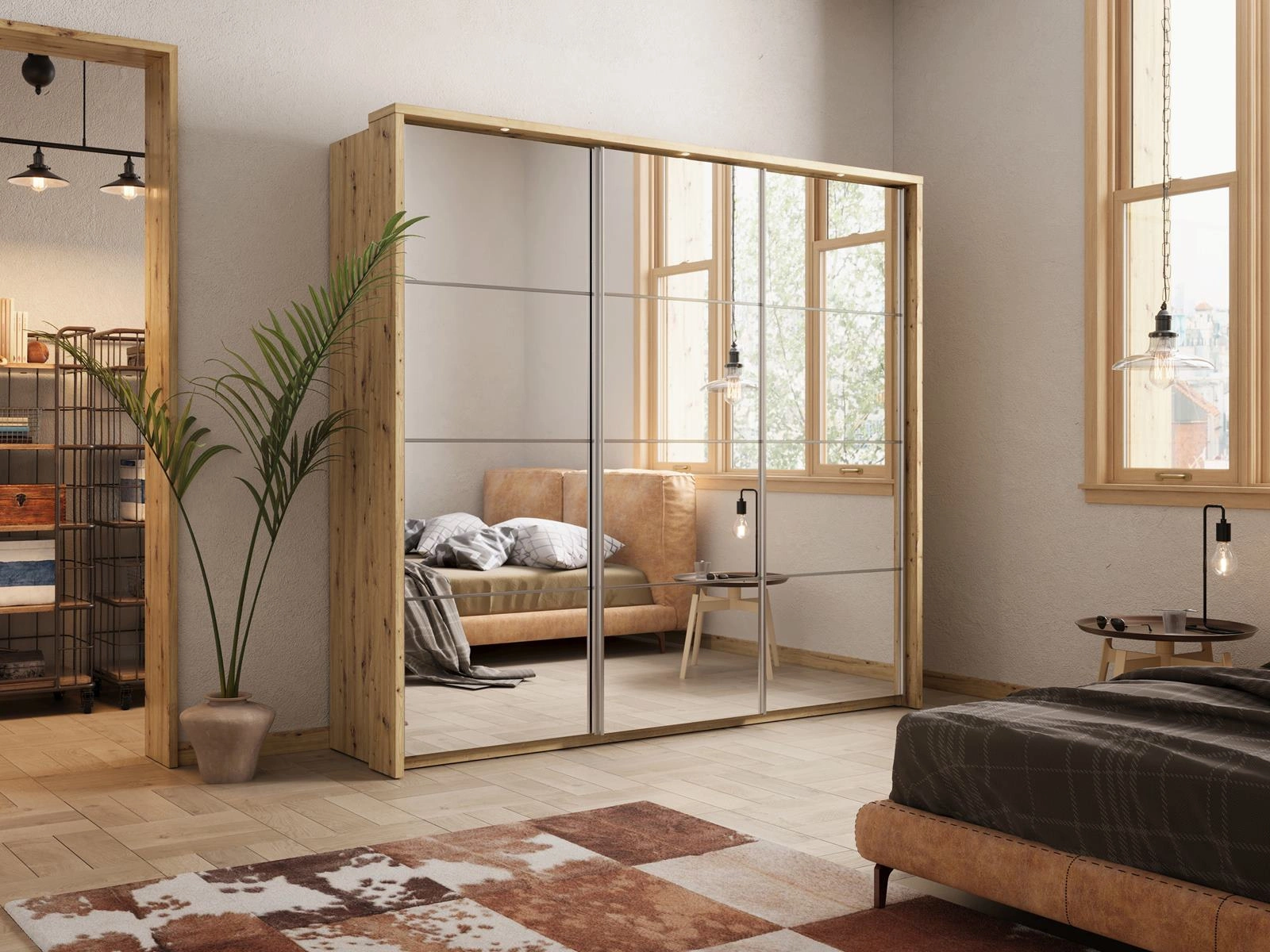 Schwebetürenschrank mit Spiegel mit 3x Kleiderstange ARTI