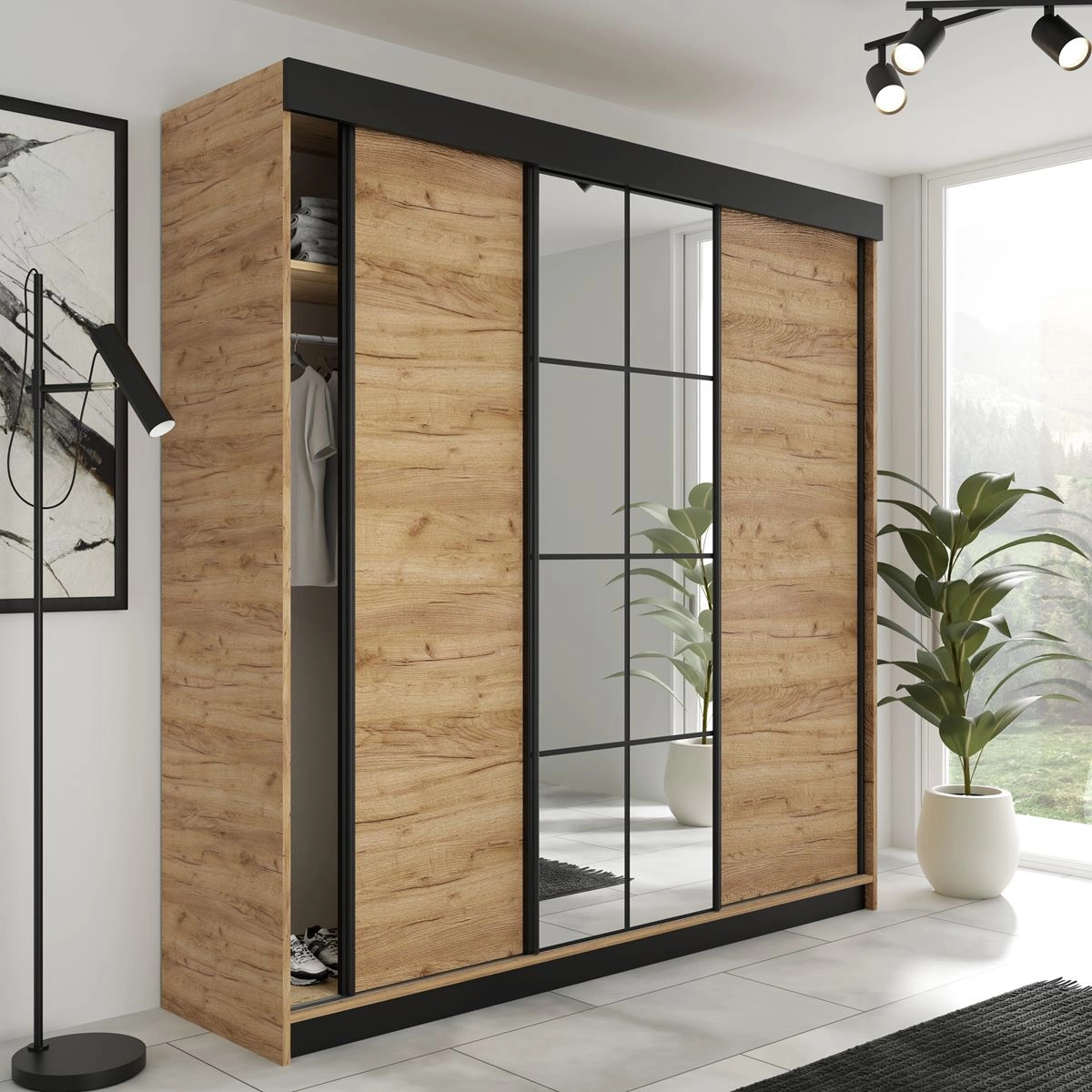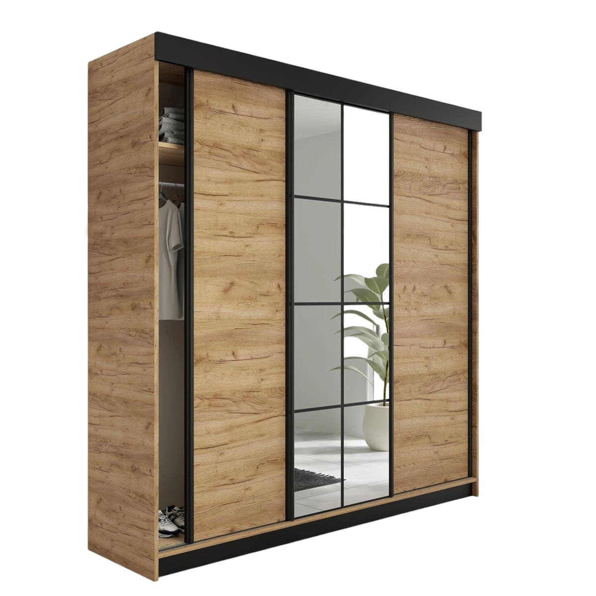 Schwebetürenschrank mit Spiegel TULIA Eiche Craft + Schwarz
