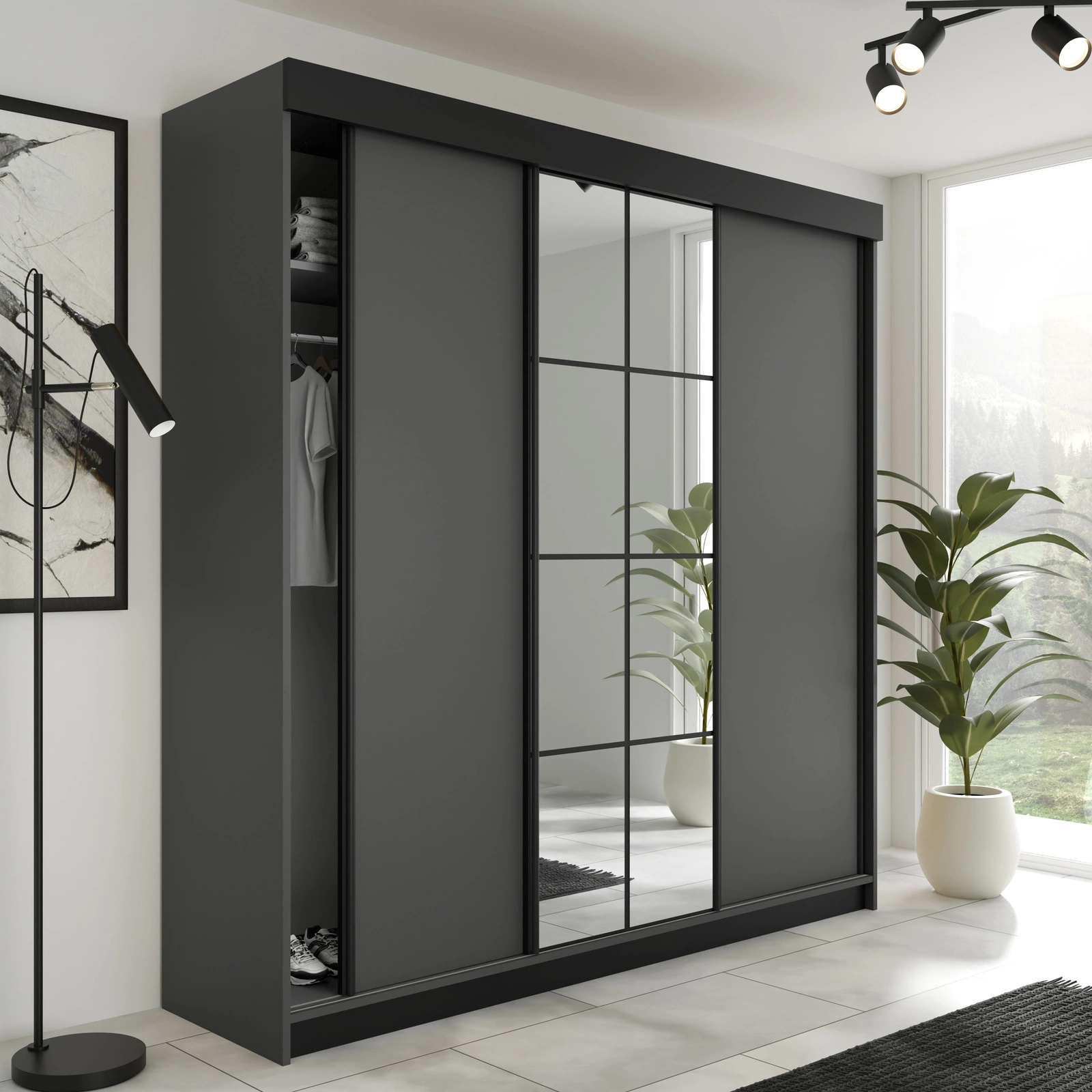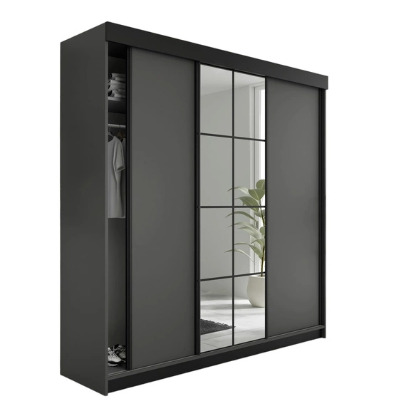Schwebetürenschrank mit Spiegel TULIA Graphit + Schwarz