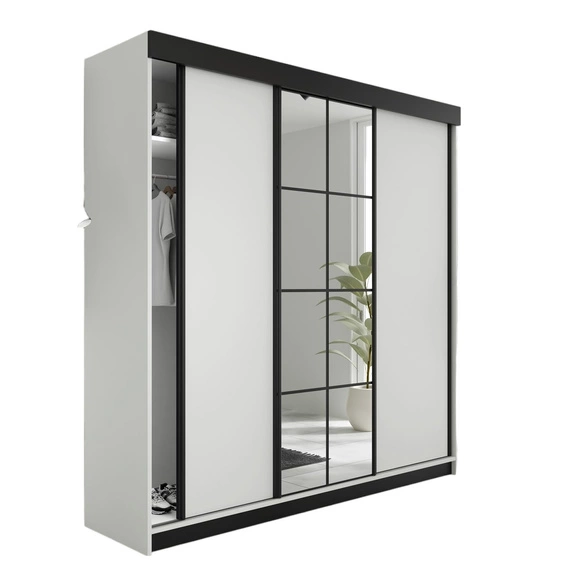 Schwebetürenschrank mit Spiegel TULIA Weiß + Schwarz