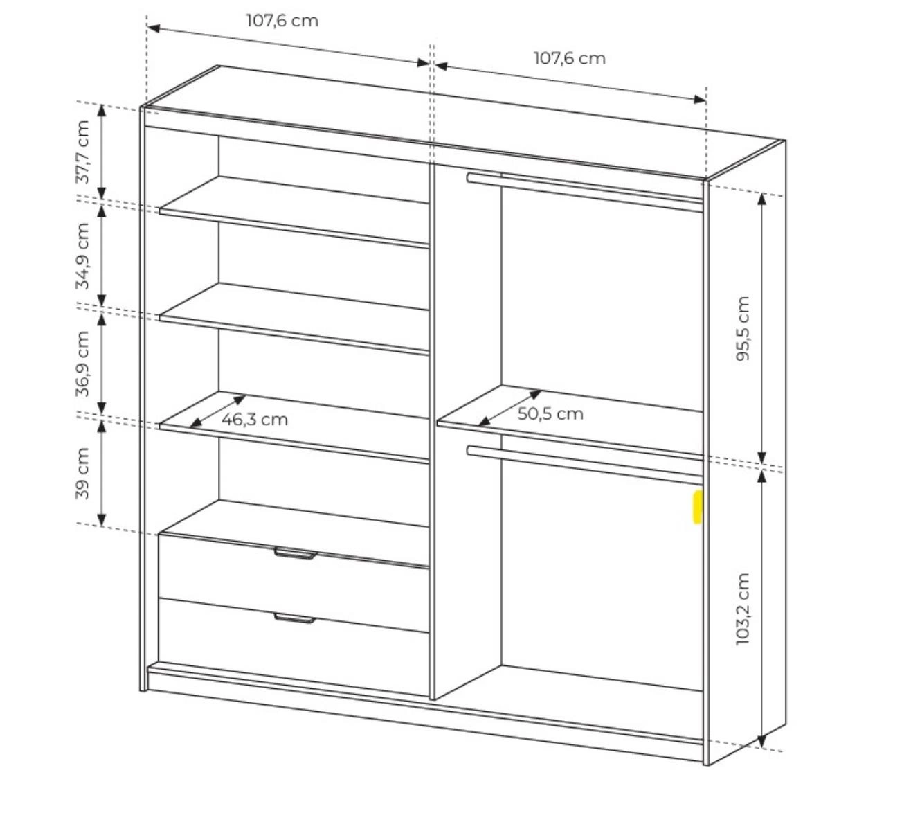Schwebetürenschrank MONS mit 2 Schubladen und Spiegel