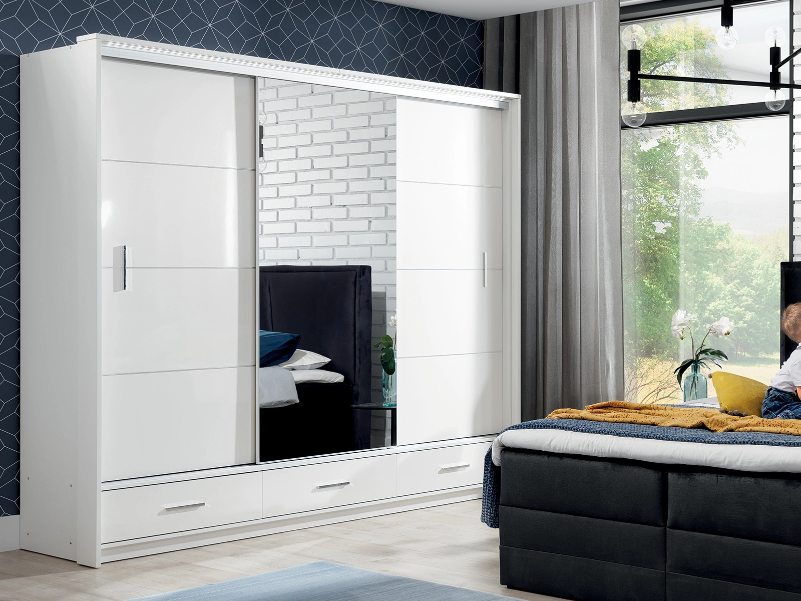 Schwebetürenschrank OPOK mit 3 Schubladen und LED Beleuchtung