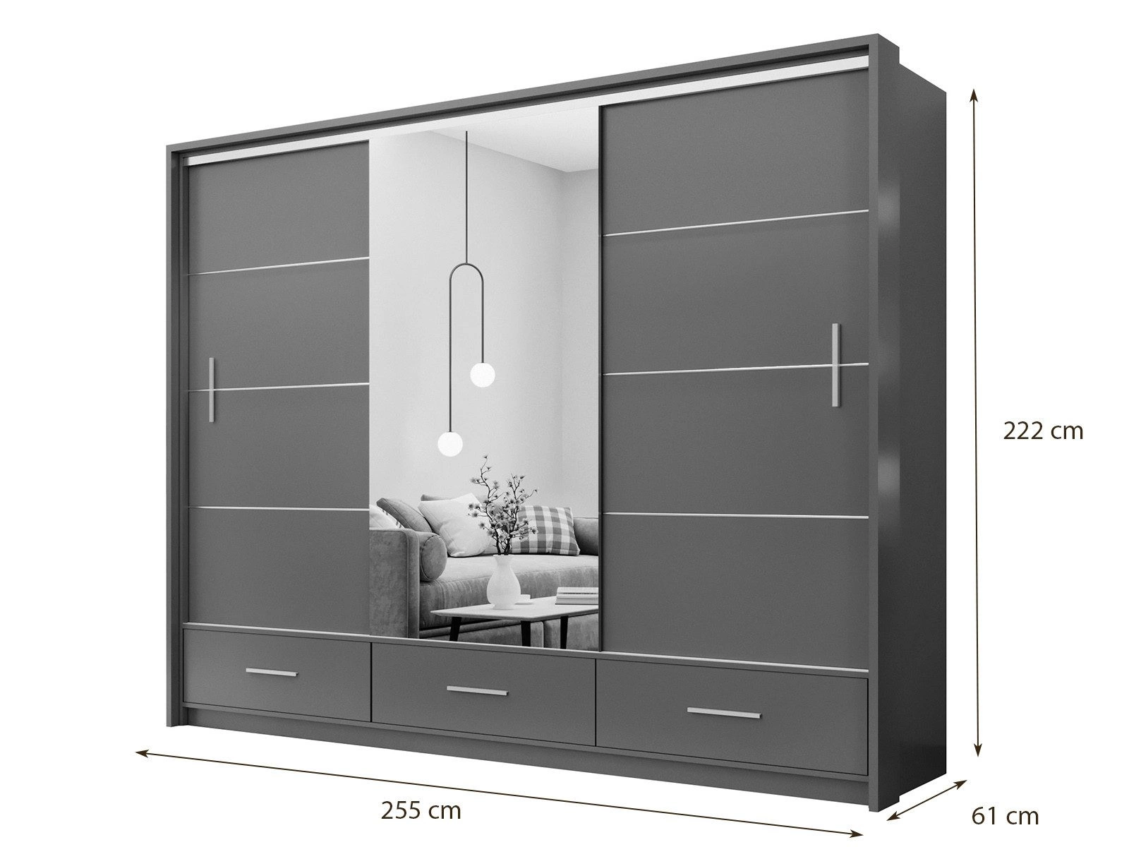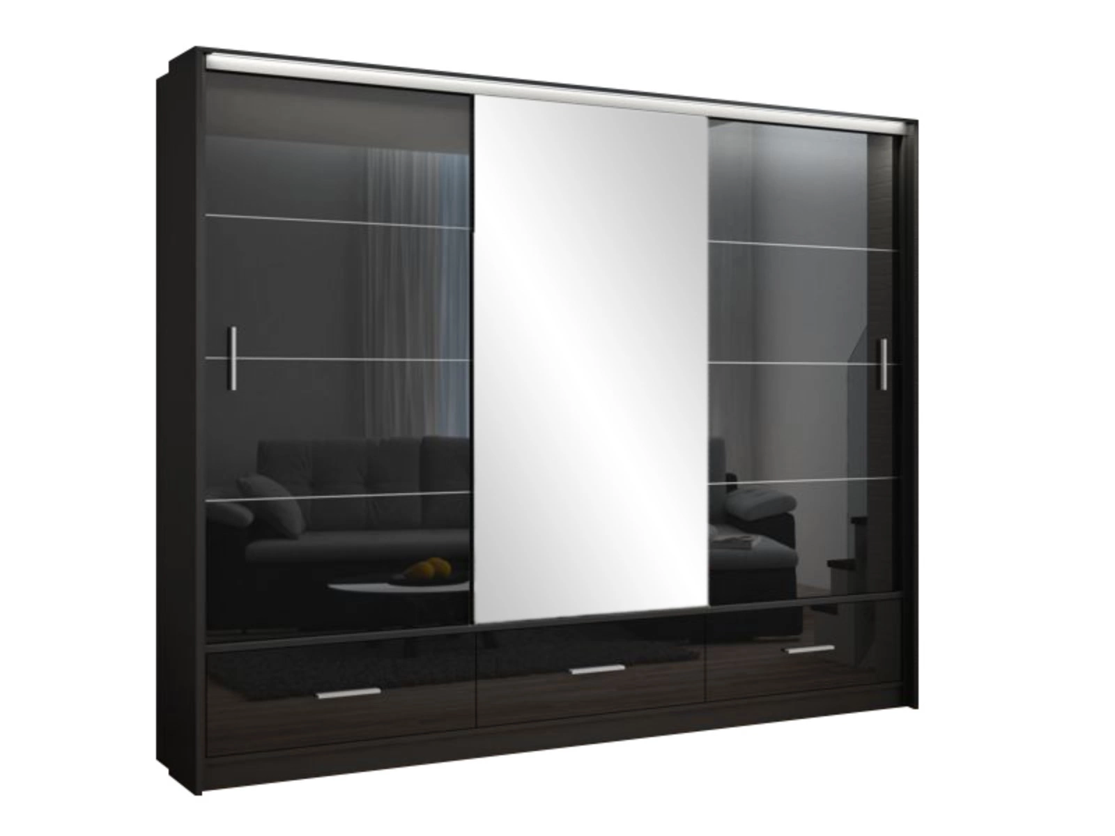 Schwebetürenschrank OPOK mit 3 Schubladen und LED Beleuchtung