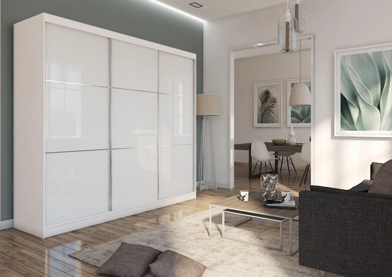 Schwebetürenschrank SANDY mit Spiegel Weiß
