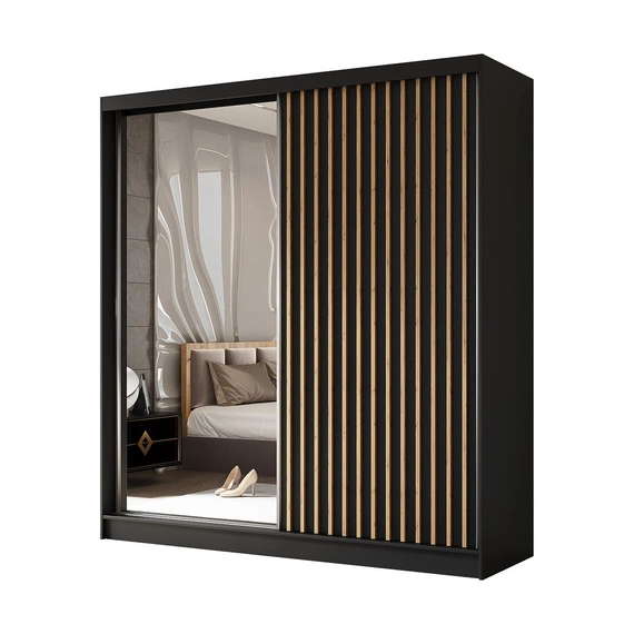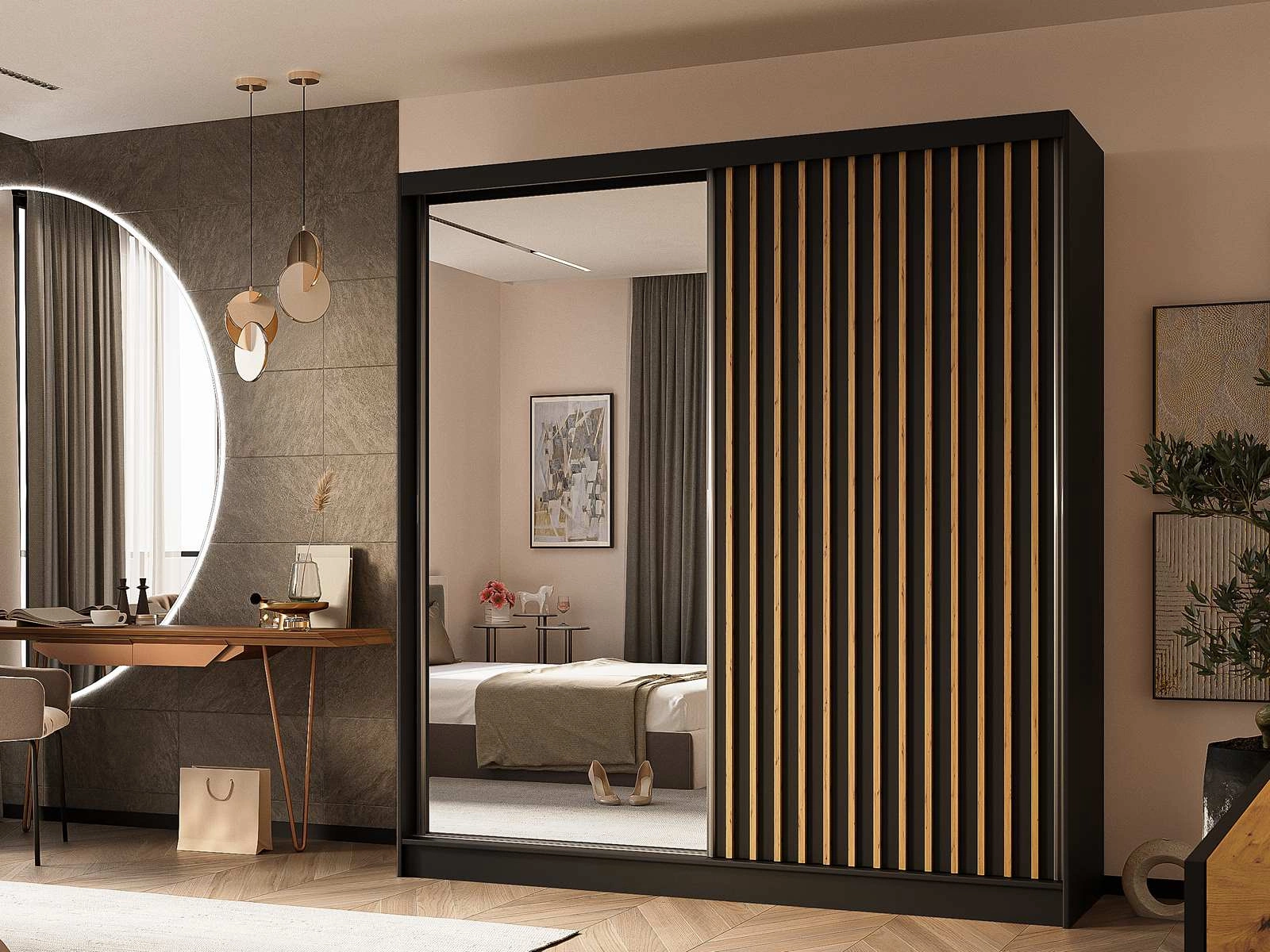 Schwebetürenschrank VENTURA mit Lamellen Schwarz