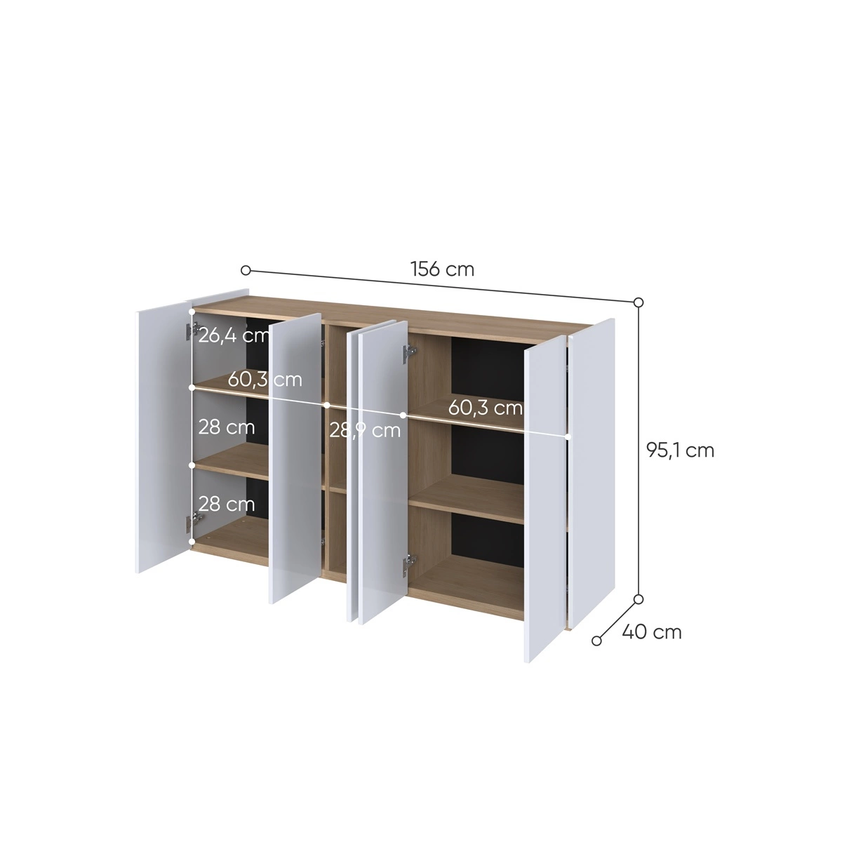 Sideboard PARIS Weiß Glanz/eiche Scandi