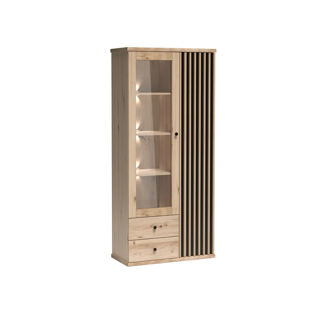 Standvitrine BORDO mit 2 Türig und 2 Schubladen Eiche Artisan