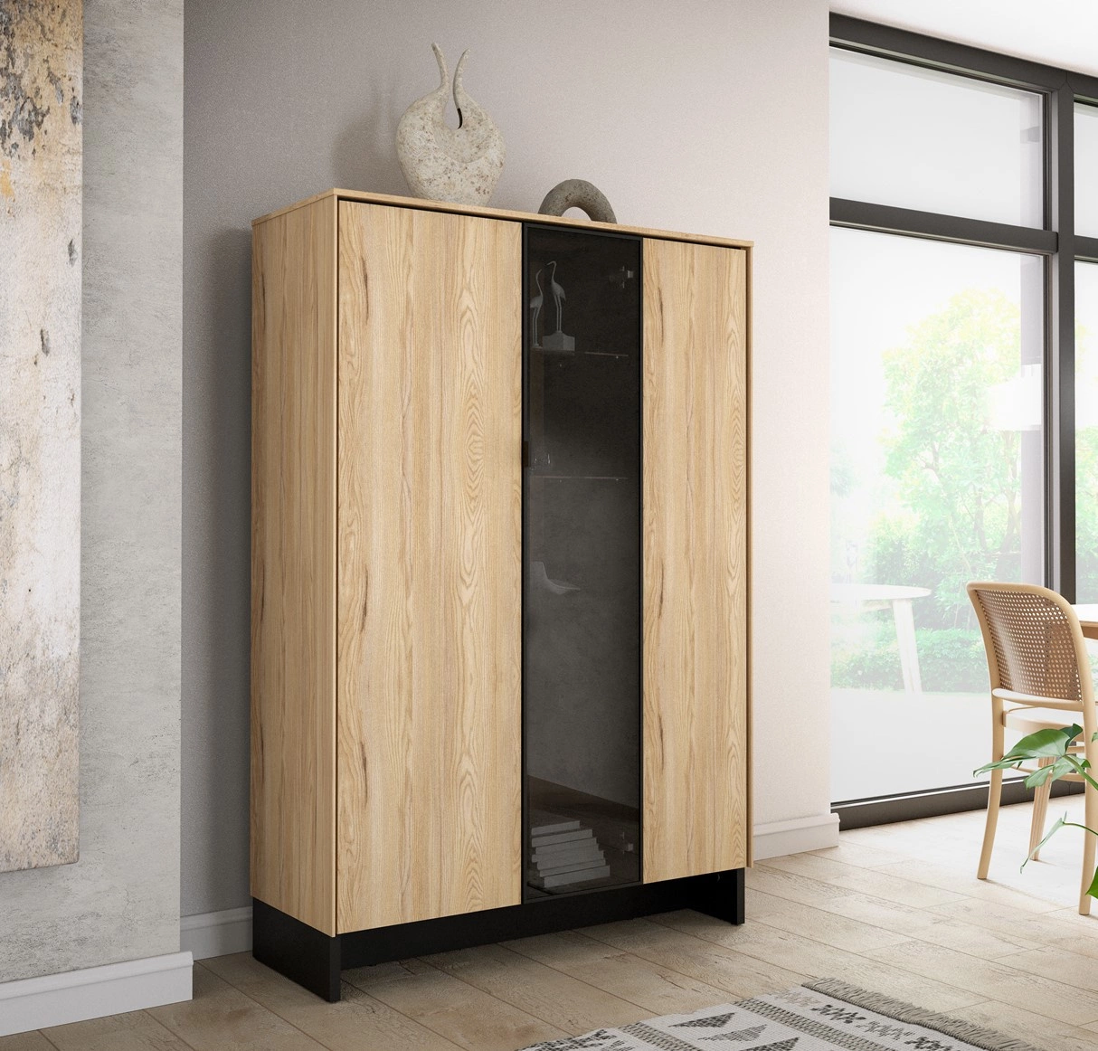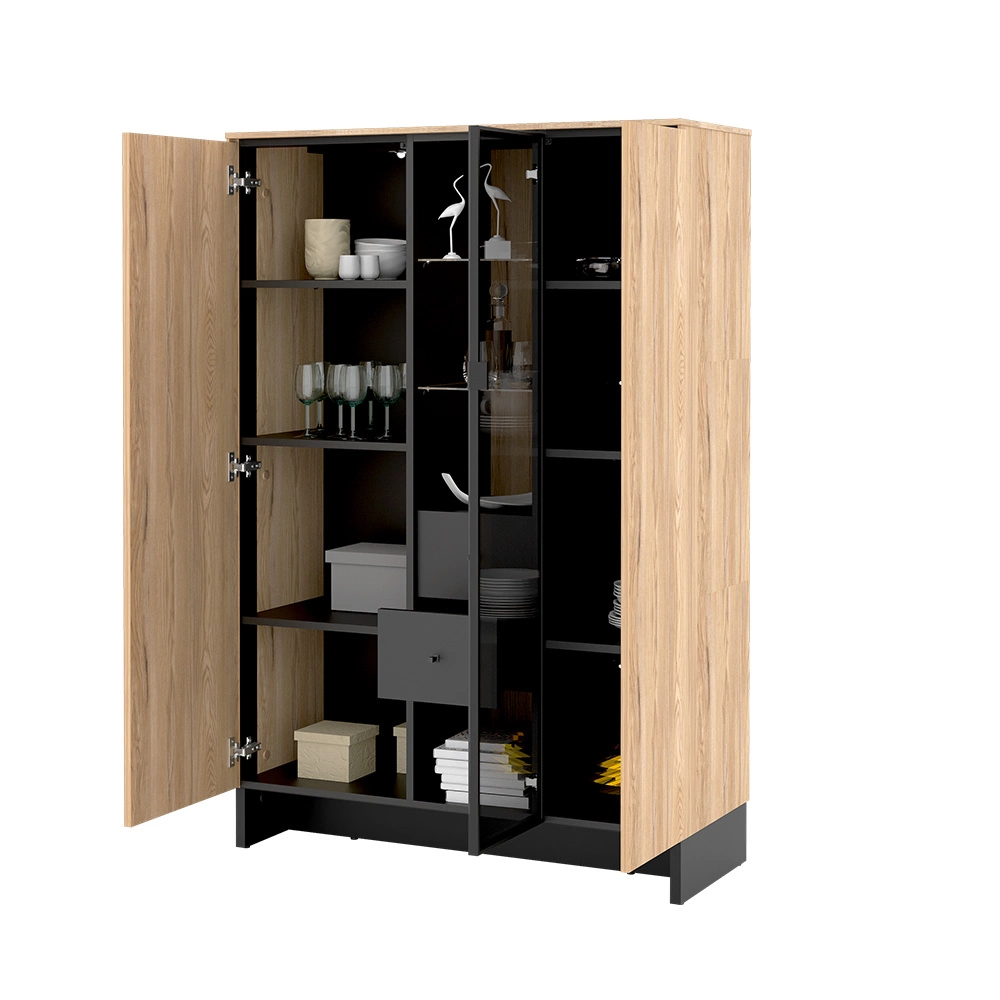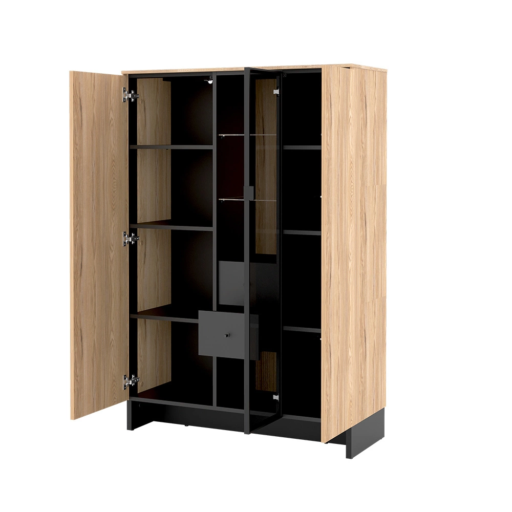 Standvitrine PORTO mit 3 Türig und 2 Schubladen Eiche