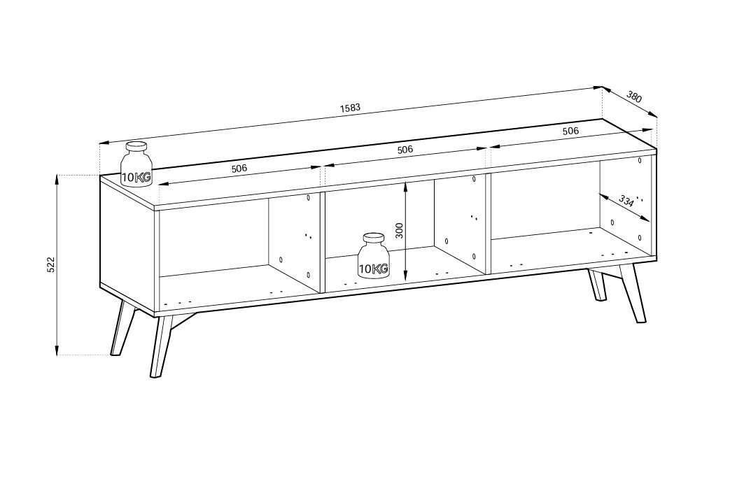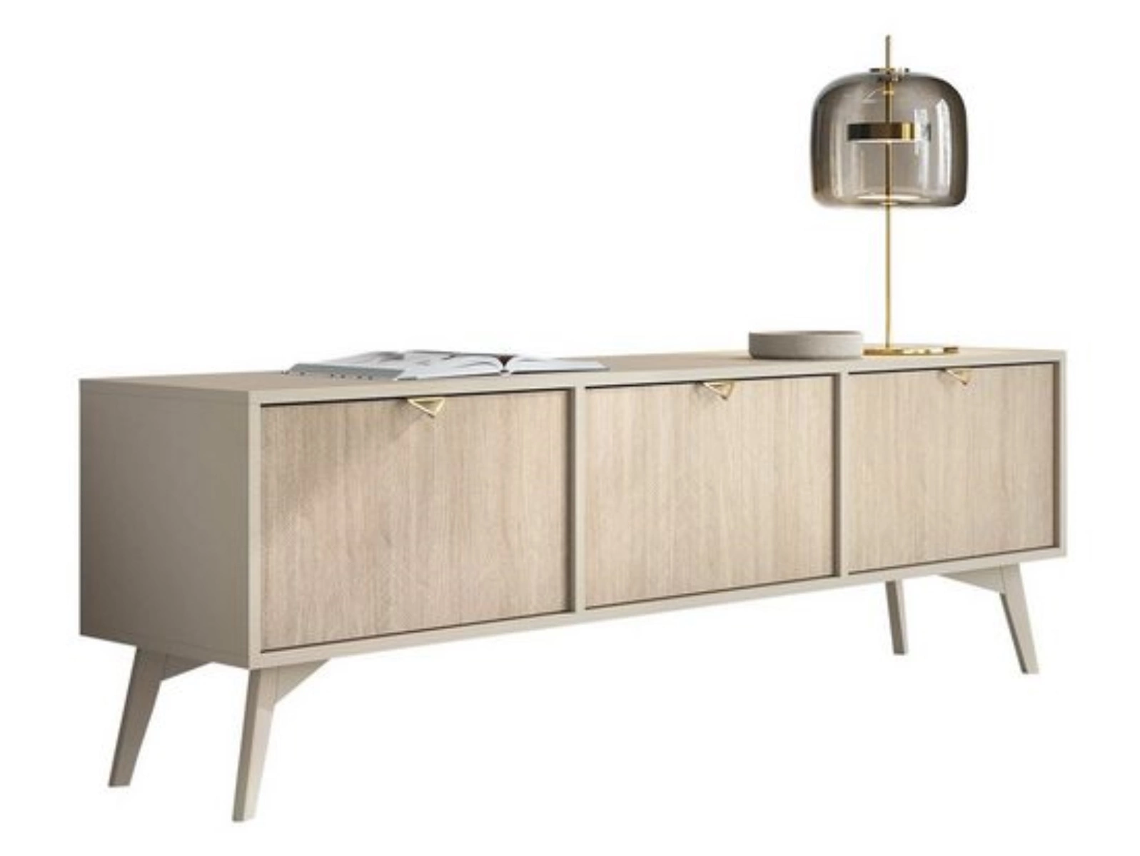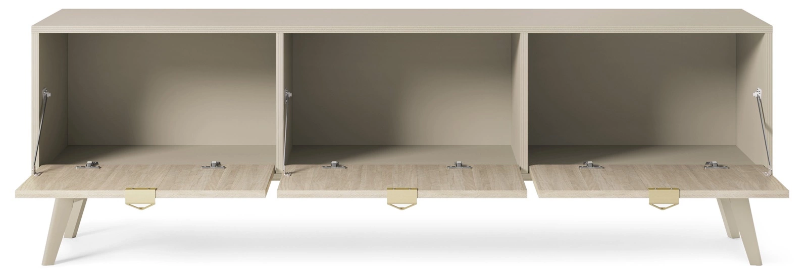 TV-Kommode mit Regalen MARIA Eukalyptus / Scandi Fischgrät