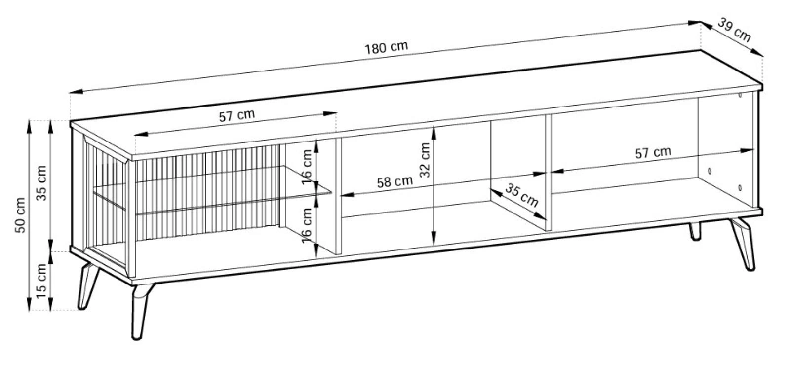 TV-Schrank dreitürig VIVIN mit geriffelte Front