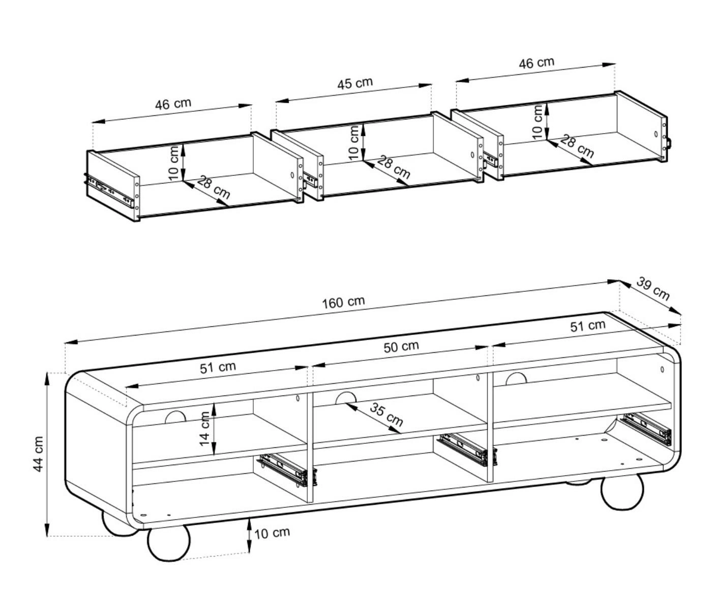- Fronten: geriffelt MDF-Platte 18 mm,
