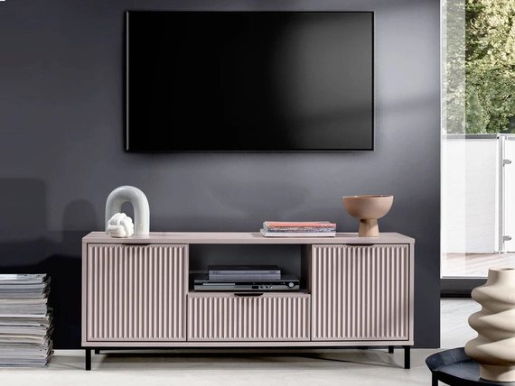 TV-Schrank mit 2 Klappen VIVAS geriffelte Front BLAU