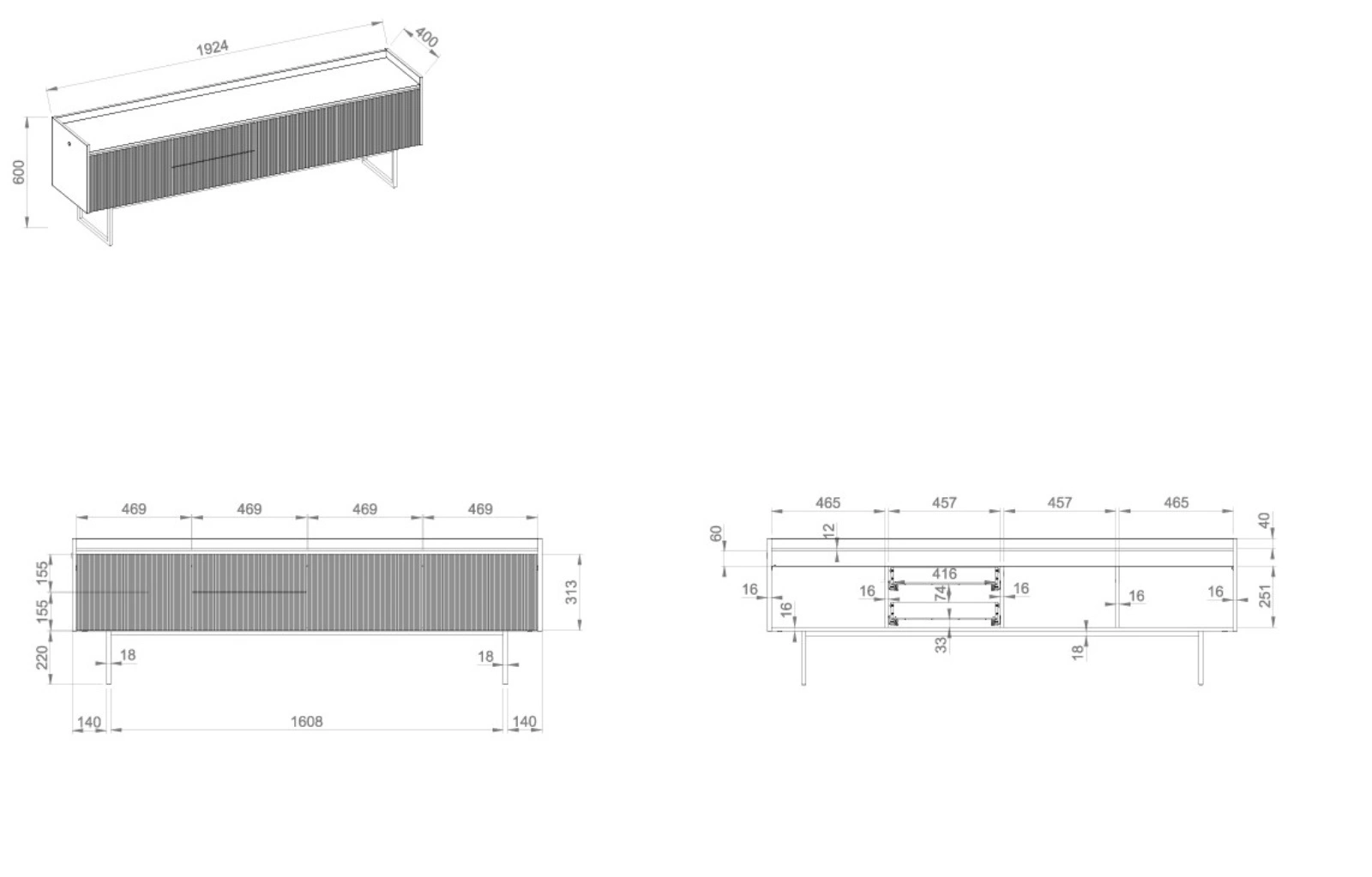 TV-Schrank mit 2 Schubladen und mit 3 Türen DENI