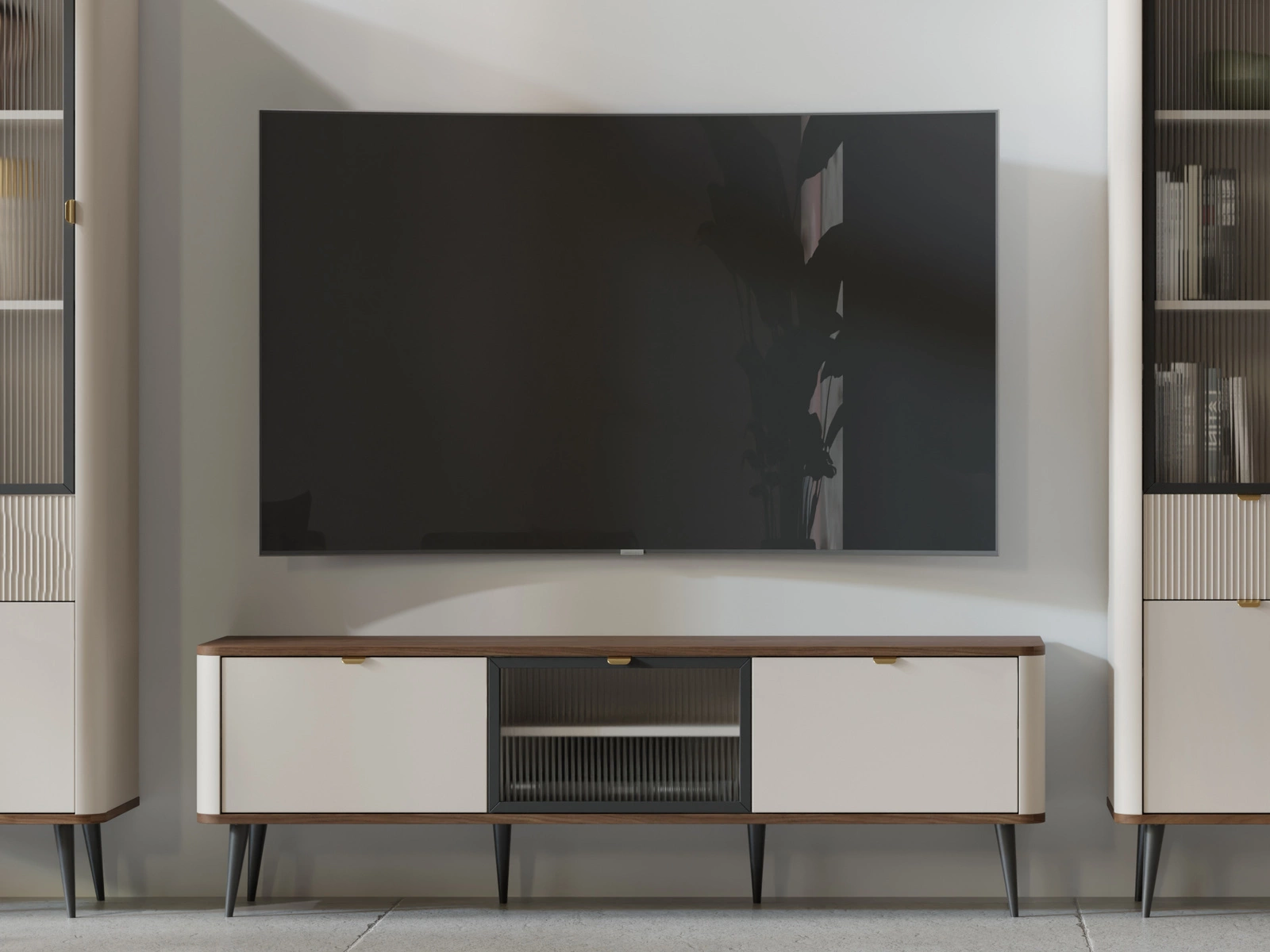TV-Schrank mit Glastür LILIA Kaschmir + Nussbaum
