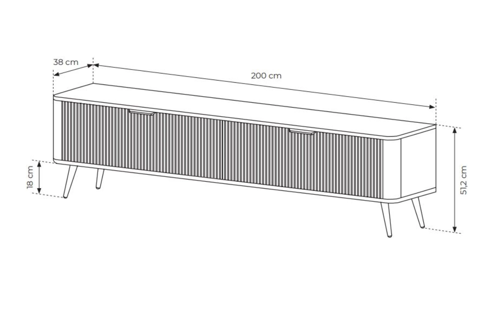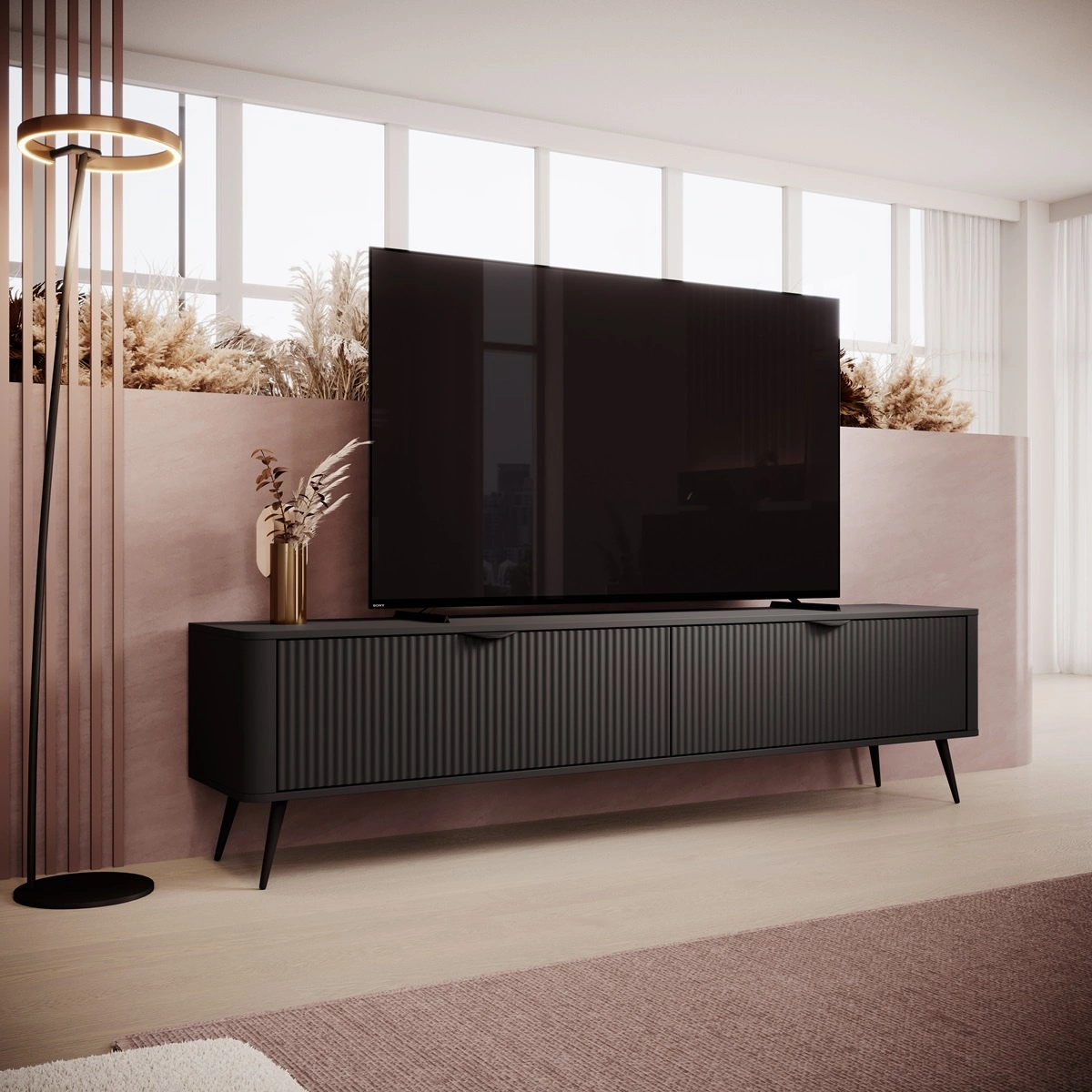 TV Schrank zweitürig mit gerifflete Front BELLO Schwarz