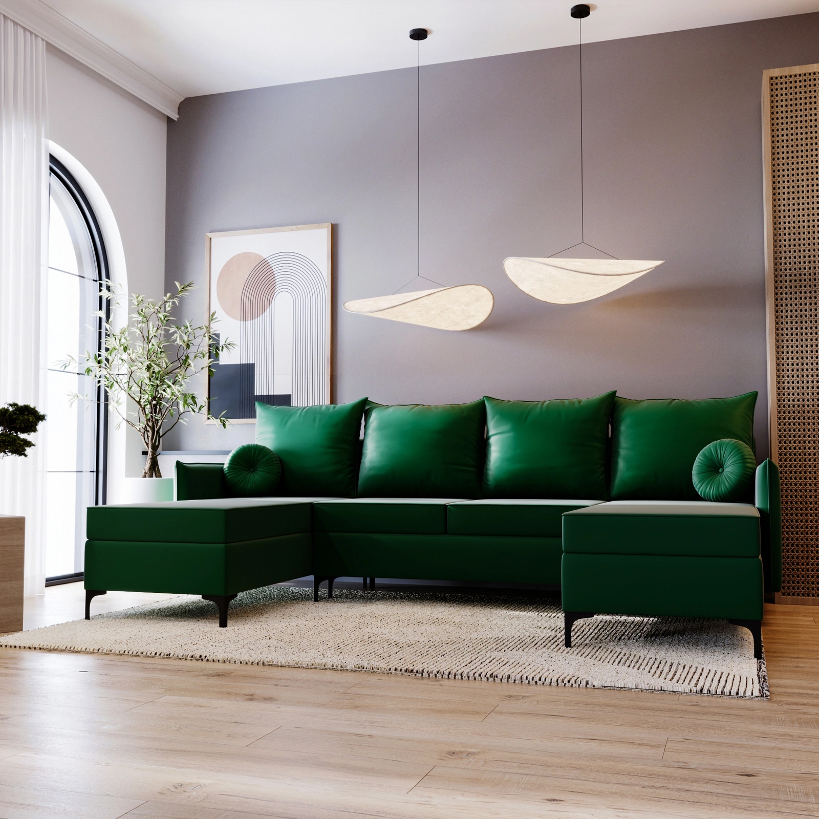 U-form LEO Ecksofa mit Schlaffunktion Grün