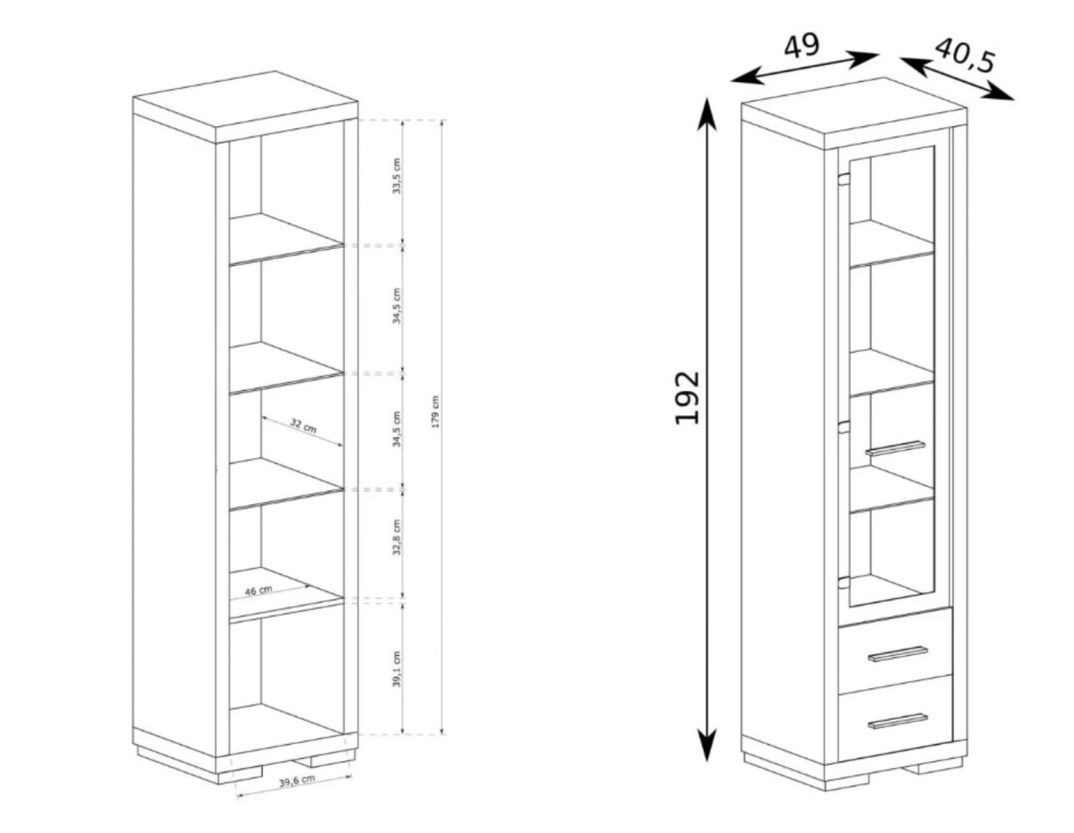 Vitrine ARIA mit 2 Schublade Eiche Santana Dunel