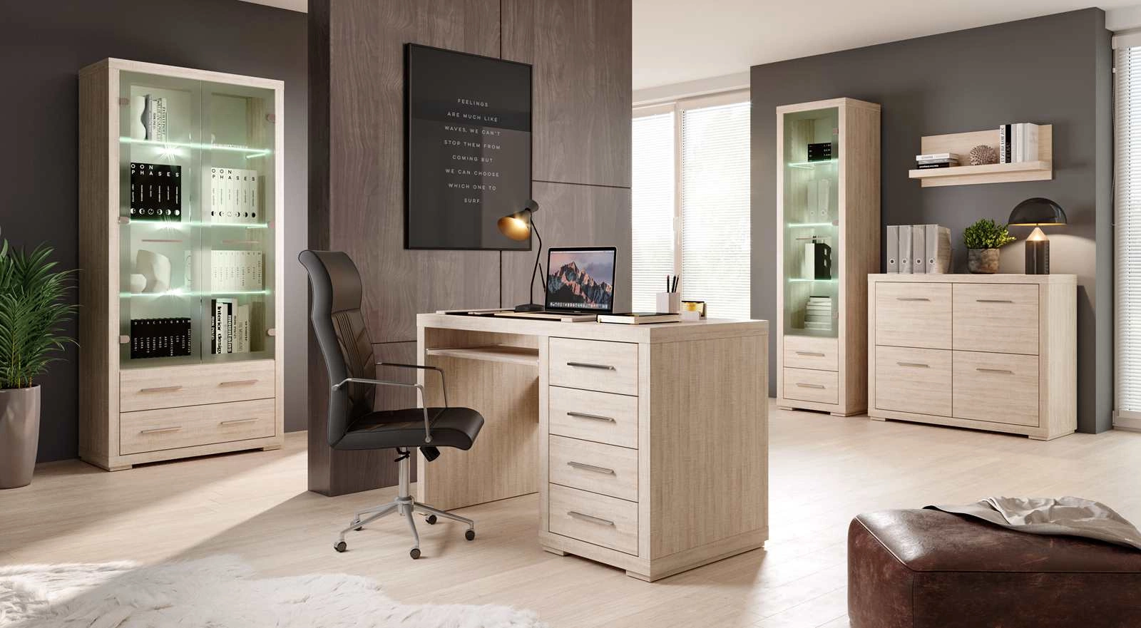 Vitrine ARIA mit 2 Schubladen Eiche Santana Hell
