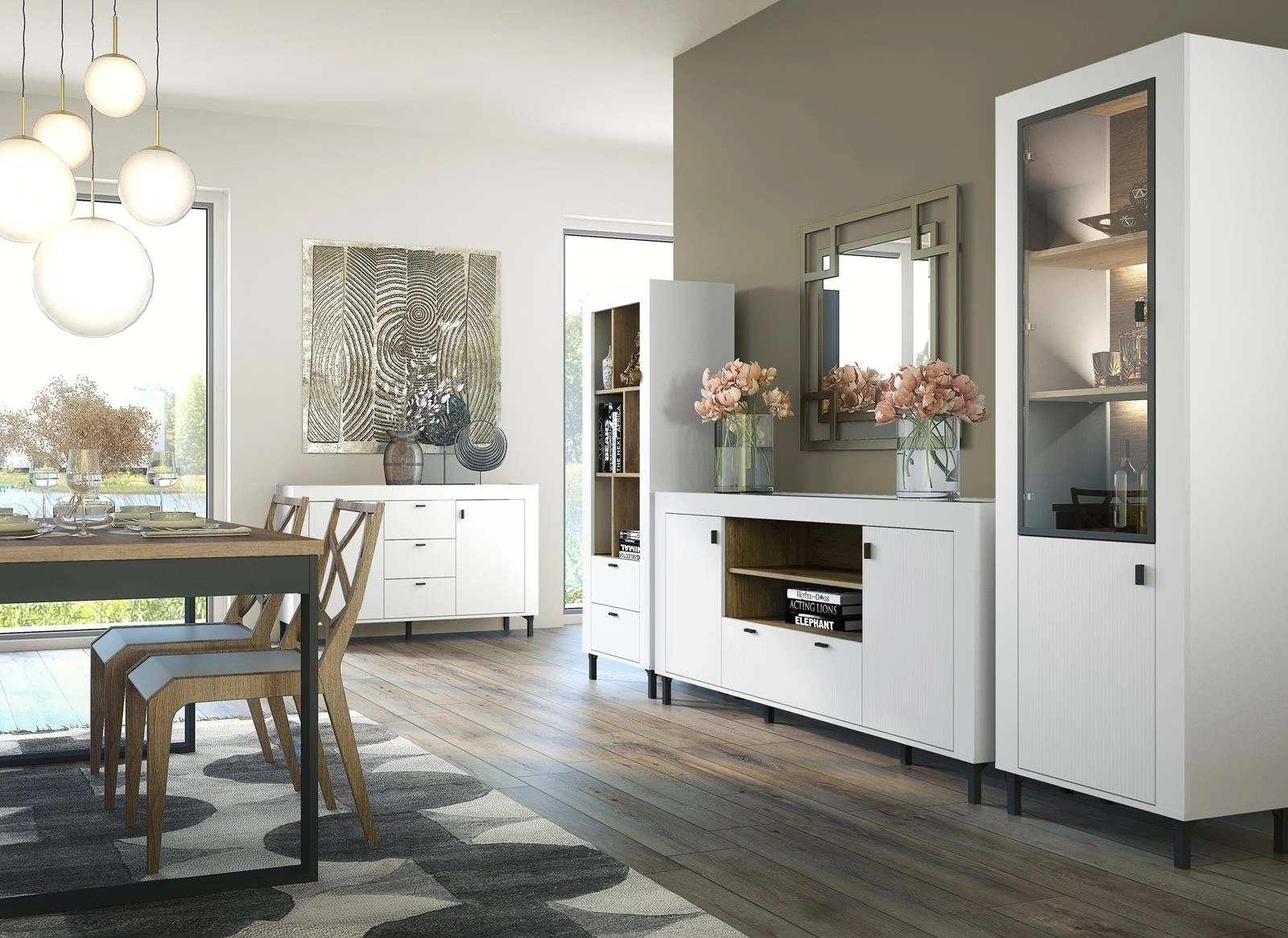 Vitrine mit Glastüren TRENDS Eiche -Whisky/ Weiß Matt